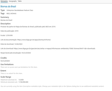 Figura 2 - Como os metadados das camadas estão sendo preenchidos