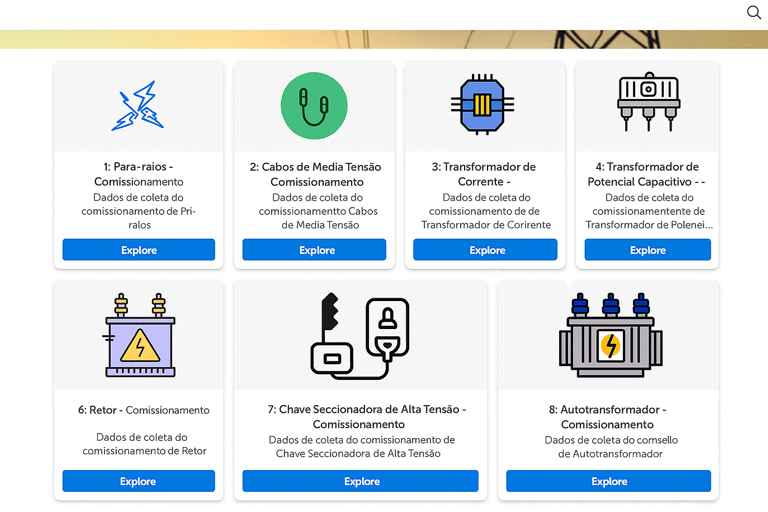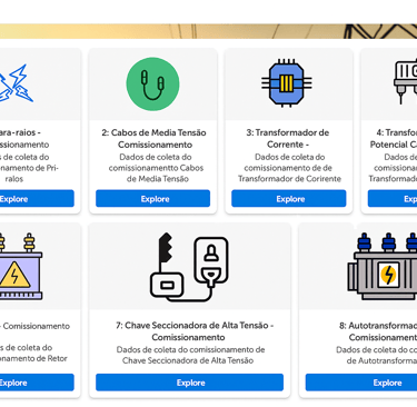 Já a área de Engenharia e Projetos contou com uma aplicação de Gestão de projetos em fase de implantação, por meio de coleta de dados em formulários Survey123 e dashboards interativos para os equipamentos listados abaixo: