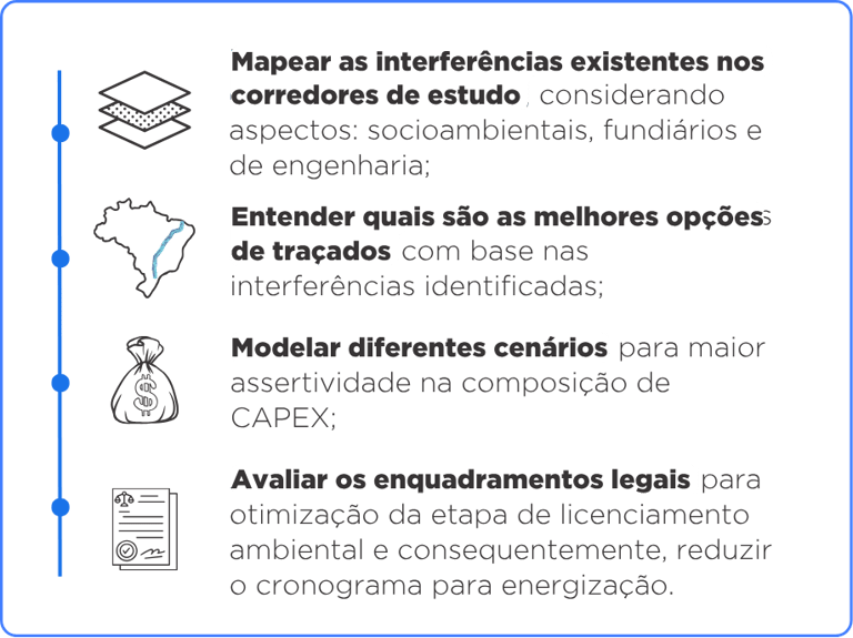 De forma automatizada, o usuário consegue modelar cenários que indicarão o traçado ótimo considerando os inputs configurados, comparação quantitativa entre eles e custo associado, saiba mais acessando o nosso StoryMap.