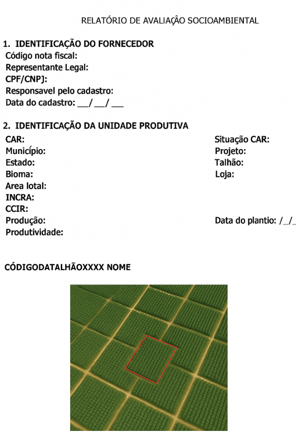 A partir da inserção do número do CAR (Cadastro Ambiental Rural) e dos polígonos das áreas produtivas potenciais, o sistema gera de forma automatizada a Avaliação Ambiental Integrada. Adicionalmente às análises de desmatamento, as áreas também são avaliadas quanto ao bioma, embargos, localização frente à Unidades de Conservação e territórios de comunidades tradicionais, terras indígenas, sítios arqueológicos, dentre outros.